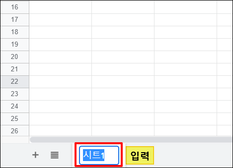 스프레드시트를 만들고 곧바로 파일명을 입력했듯이, 시트를 만들때도 곧바로 시트명을 입력하는게 좋다.