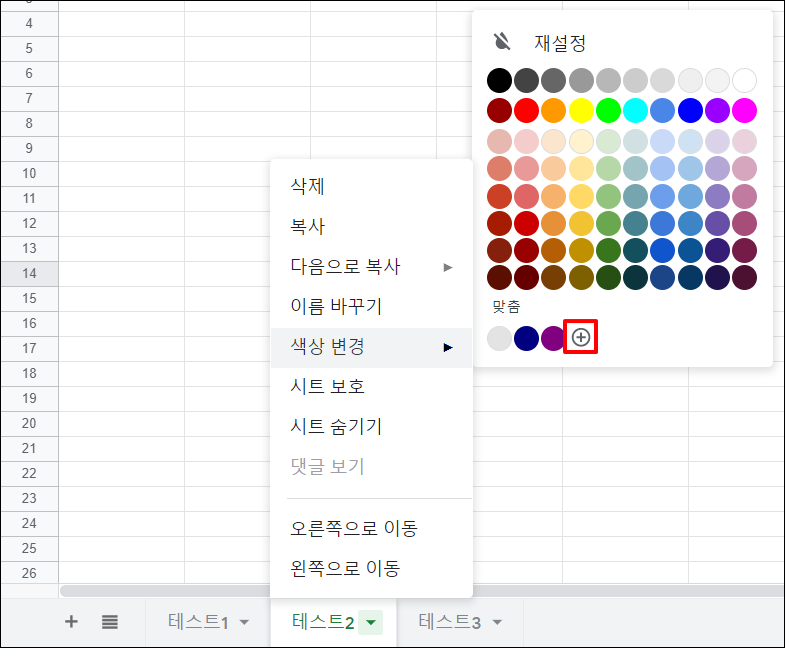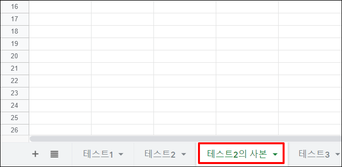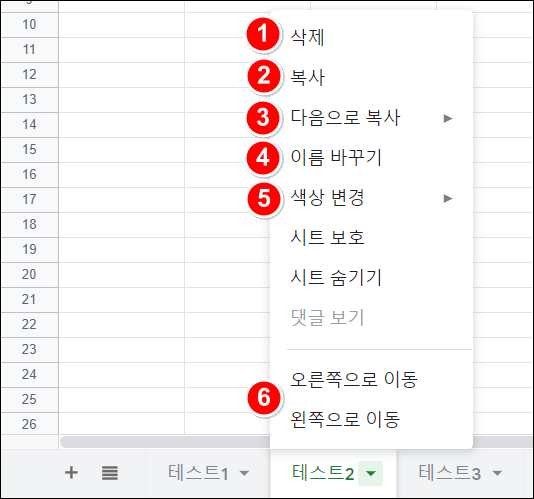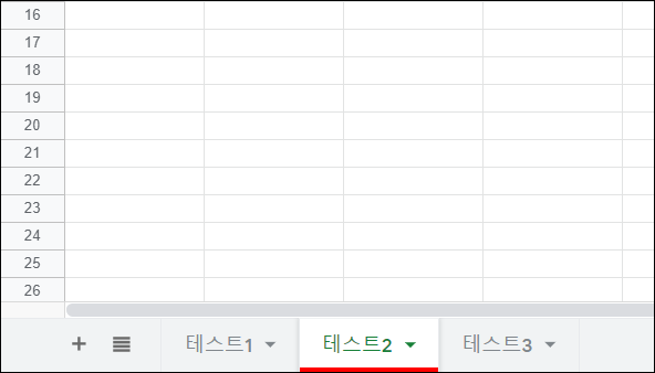 선택한 시트를 삭제한다. 테스트2 시트가 삭제되었다.