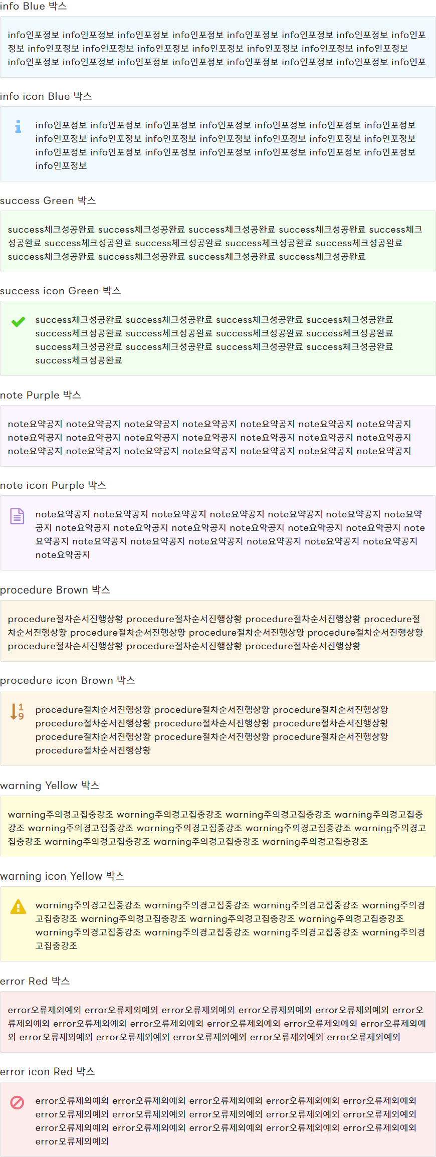 아래 이미지는 총 12개의 텍스트 상자를 캡처한 이미지로 앞으로 직접 만들어볼 텍스트 상자의 완성본이다. 이 중에서 필요한 텍스트 상자만 추가 CSS 클래스나 패턴으로 만들어 사용하면 된다.